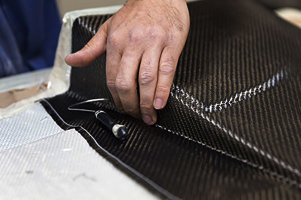 碳纤维零部件的制作通常从预浸料开始。预浸料分为热固性和热塑性两种类型。热固性预浸料需要在低温环境中保存,使用前需从冷库取出并进行回温处理;而热塑性预浸料则可以直接使用。热固性和热塑性碳纤维预浸料智上新材料都有,广泛应用的还是以热固性的为主,这里针对的就是热固性碳纤维制品来说,根据设计图纸的要求,经过切割系统进行异形裁切,这些预浸料会被精确裁剪成所需的形状和尺寸,误差控制在±0.1mm以内,确保复杂构件的轮廓精度,为后续工序做好准备。